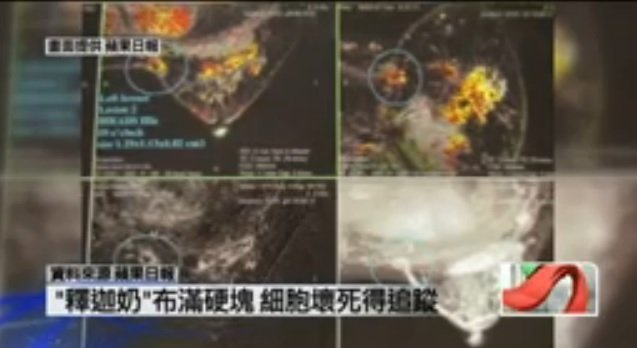 乳房的乳汁或囊液沈積於囊腫太久,造成鈣化,有如剩餘茶水沈積於杯底。 - 惡性鈣化