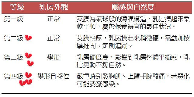 十多年前的果凍矽膠隆乳,因對乳房結構及層次掌握不夠精準,加上術後未按摩,有些女性對外觀改變感到不夠自然,造成不對稱、雙層奶、石頭奶等後遺症。其中,乳房硬化造成性事不協調,多數原因是未確實按摩造成莢膜孿縮。